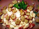 5. Перемешать все ингредиенты, кроме сухариков, посолить, поперчить, заправить майонезом.