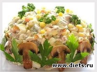 3. Салат с курицей, грибами и маринованными огурцами