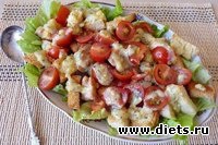 Салат "Цезарь" подаём свежеприготовленным, желательно пока мясо и сухарики не успели остыть.