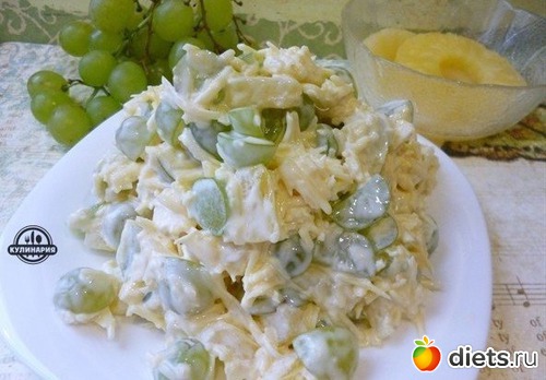 Честно говоря, сочетание ананасы + чеснок очень смущало, но попробовать его очень хотелось, и на удивление салат нам понравился