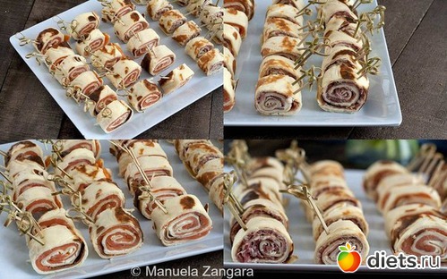 3. Свернуть рулетики, начиная сворачивать рулетики с короткой стороны. Сколоть филе зубочистками. Рулетики, запанировать в муке и обжарить на сковороде в раскаленном масле, с 2х сторон.