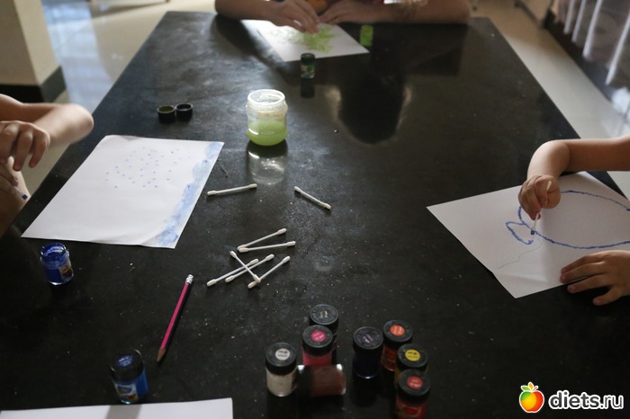 Я в детстве косметическими тенями рисовала, в основном открытки.