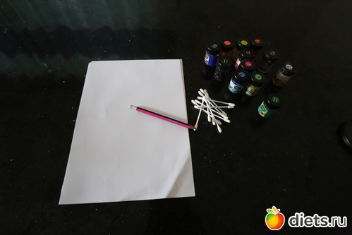 Нм нужны : бумага, простой карандаш, краски и ватные палочки