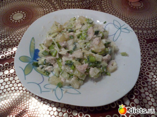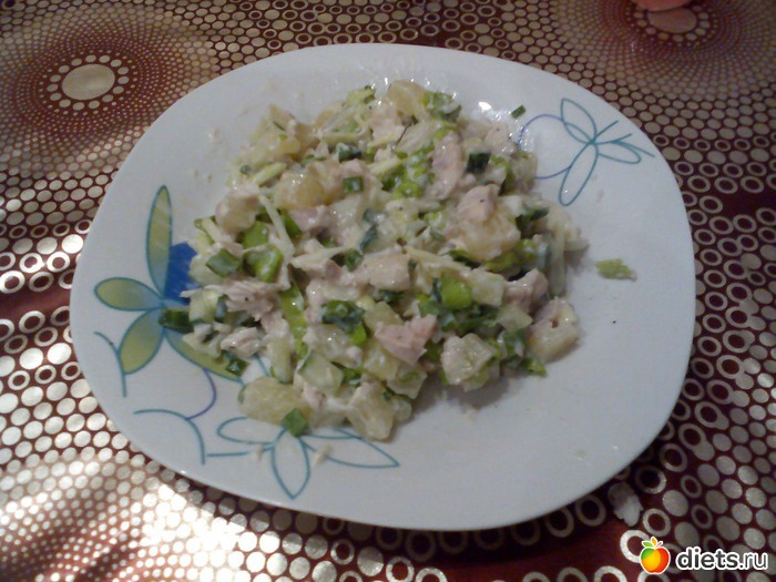Ужин - салат с куриной грудкой, овощами, заправленный йогуртом