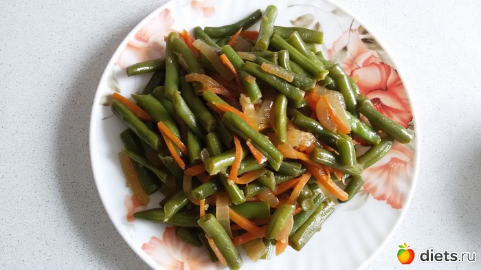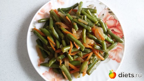 О : стручковая фасоль жаренная с луком и морковкой + салат из вареной свеклы и лука.