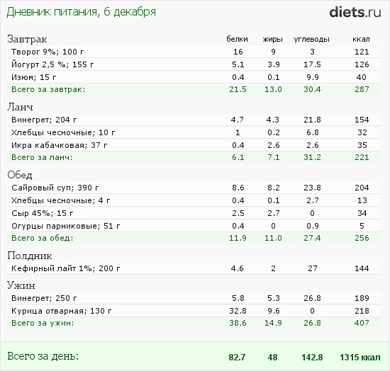 Коридор калорий - 1200-1500 - уложилась)) сегодня по плану 1300
