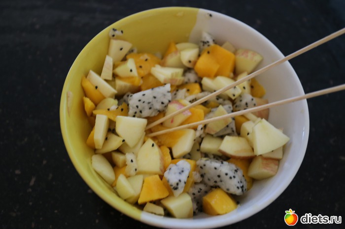 Завтрак кефир, семена чиа, ложка овсяных хлопьев и красная питахайя.