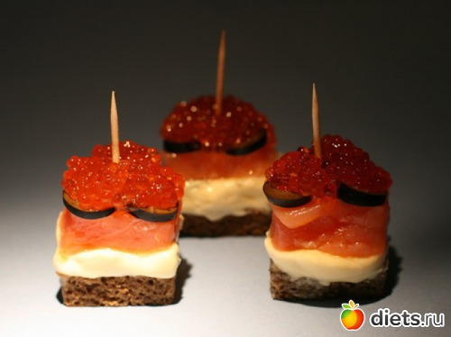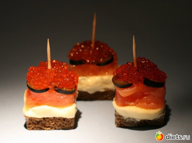 Слоеные канапе из семги с икрой