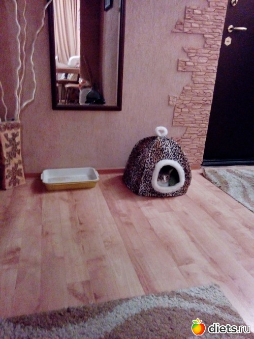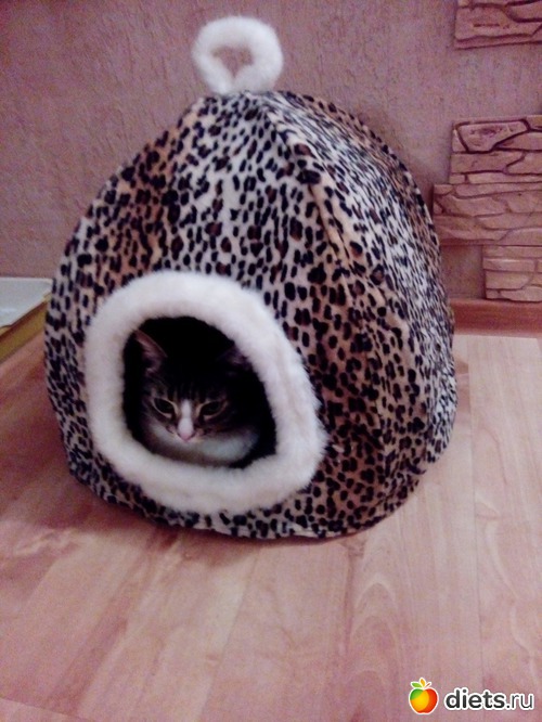 Решила и своего пушистого домочадца порадовать - сшила ему домик. Правда, он там не всегда спит, но иногда с удовольствием тусуется