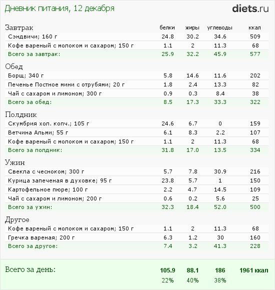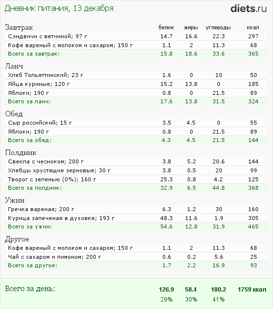 Жиров многовато с углеводами, надо завтра на творог подналечь...