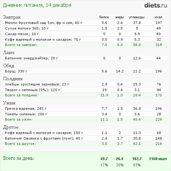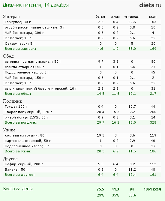 Ну у тебя калорий маловато, и белка можно было добавить, а вот по жирам и углям в самый раз