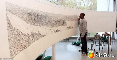 Страдающий аутизмом талантливый художник Стивен Вилтшер нарисовал 5-метровую панораму Нью-Йорка по памяти, после того, как в течении 20 минут изучал город с высоты птичьего полета.