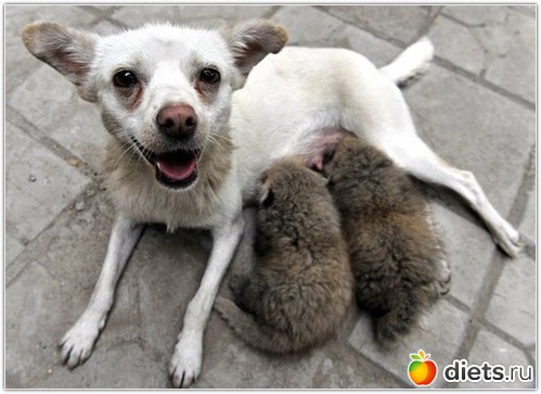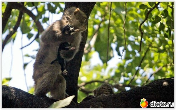 Обезьяна, потерявшая своего ребенка, усыновила щенка. Джамму, Индия.