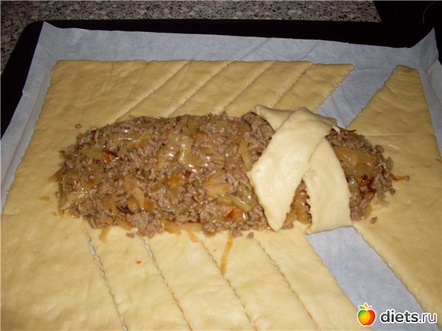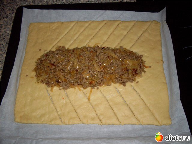 Начиная с углов делаем надрезы до начинки толщиной примерно 3-4 см