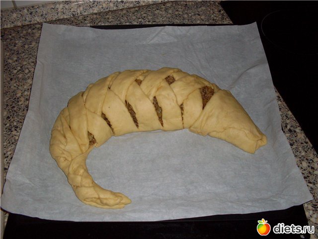 Как только достали пирог из духовки, накройте его влажным полотенцем, а сверху ещё сухим, устроим пирогу вроде как парилку, это для того чтобы корочка была мягкой...:-)
