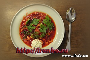 Борщ по праву считается одним из самых вкусных первых блюд. Мой внук на вопрос, какой суп ему приготовить, всегда отвечает - бабушкин борщик. Его можно есть почти всем, и людям с некоторыми заболеваниями желудочно-кишечного тракта и худеющим. Диетический борщ без уксуса и лимонной кислоты. Но по вкусу не уступает традиционному борщу.