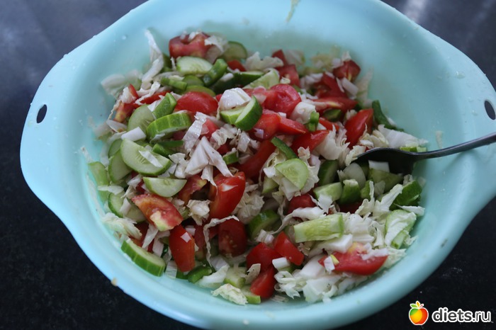 35. Сделала тазик салата.