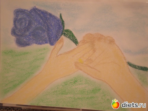 А здесь я соединила пастель с серебристой акриловой краской. Это розы. Но рисунок уже поистрепался, поэтому не совсем понятно что это сейчас.