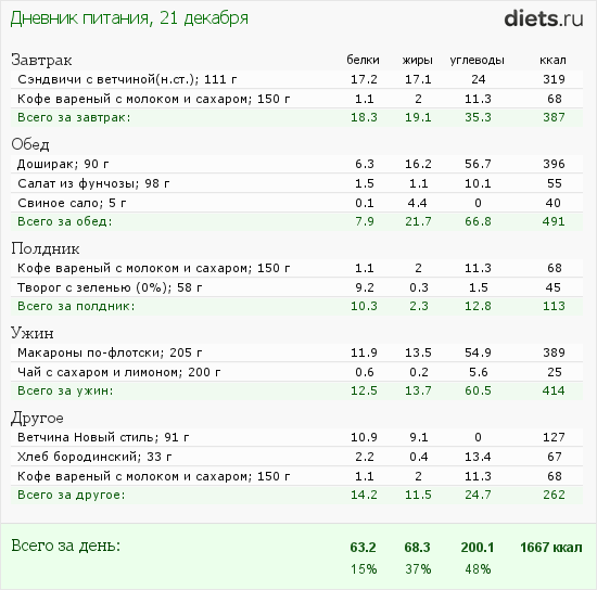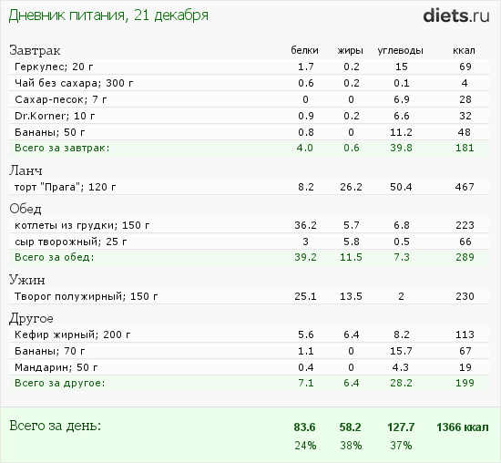 В еде я сегодня совсем не молодец, но зато вчера и сегодня были силовые. А завтра смена, так что много не наешь.