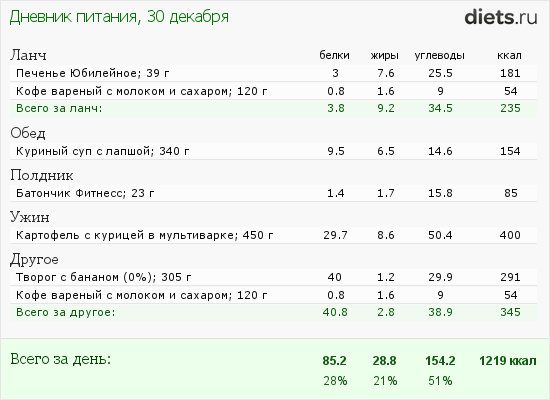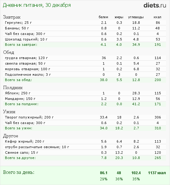 Вот мой последний в этом году дневник питания, завтра уже не до подсчетов