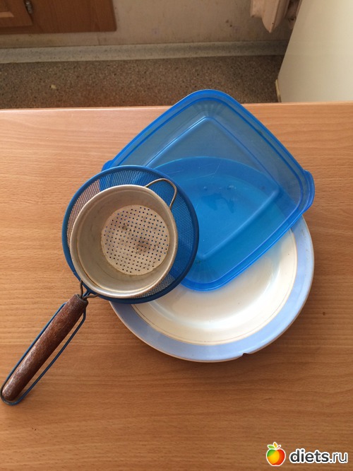 24 - старая тарелка (никогда ей не пользовались, лежала на авось), крышка от пластикового контейнера и 2 ситичка