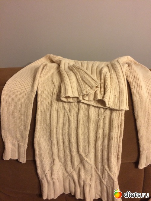 27 - свитер. Он идёт в мусор. Очень быстро пряжа скаталась катышками. Решила носить дома, но в нем как-то не камфорно. Поэтому нечего ему место в доме занимать. Пусть отправляется в вещевой рай)))