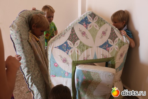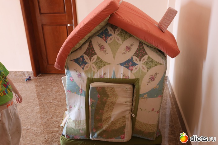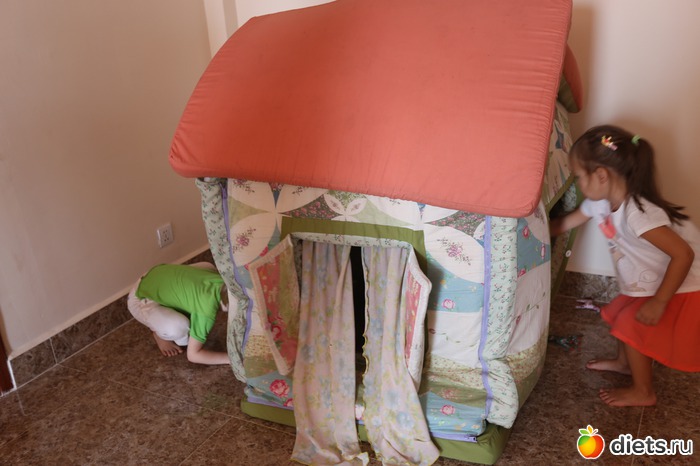 В углу стоял тряпичный домик, дети его сломали, а потом долго и упорно собирали.
