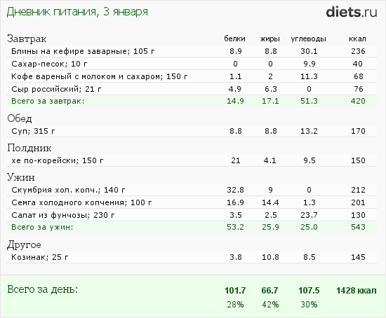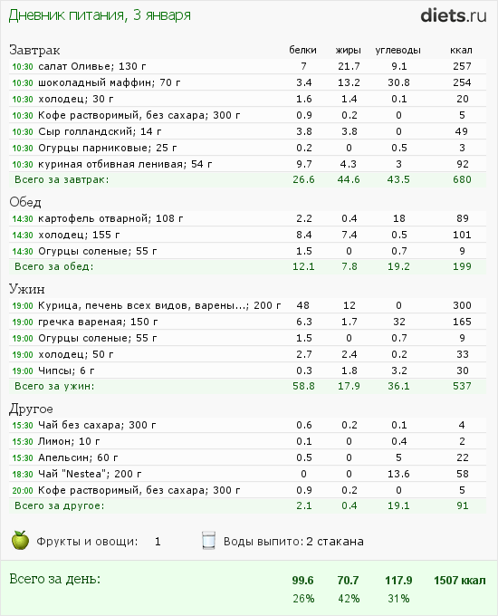Калорийность продуктов