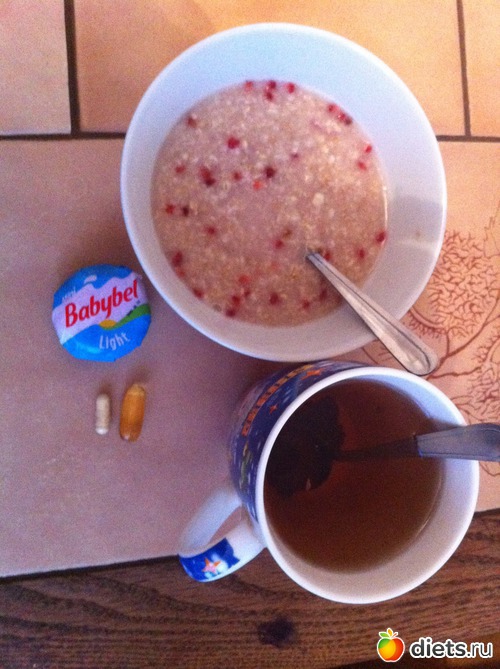 1. овсяная каша с малиной, сыр Babybel, чай, Омега 3, витаминка