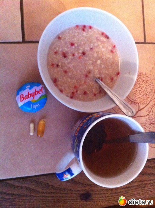 1. овсяная каша с малиной, сыр Babybel, чай, Омега 3, витаминка