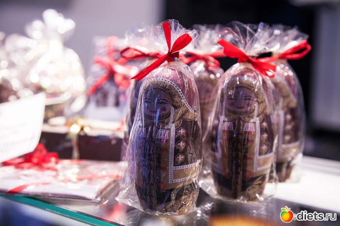 Если поводить глазами по кафе и его витрине, то можно обнаружить не только русское какао, но и ещё таких вот россияночек )) Шоколадные, стот в рядочек.