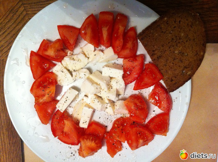 5. помидоры, Моцарела, хлеб
