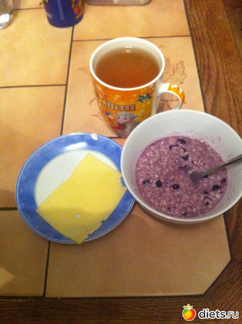 1. овсяная каша с черникой, сыр, чай