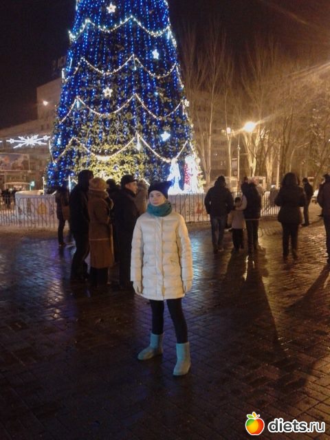 На новый год прям вечером ходили на елочку нашу, вот. Танюша. как обещала, наша красивая елочка, хотя и людей не сильно много на площади, но Дед Мороз был со Снегуркой, музыка и люди - никто не пил, порядок был, все чисто, спокойно.
