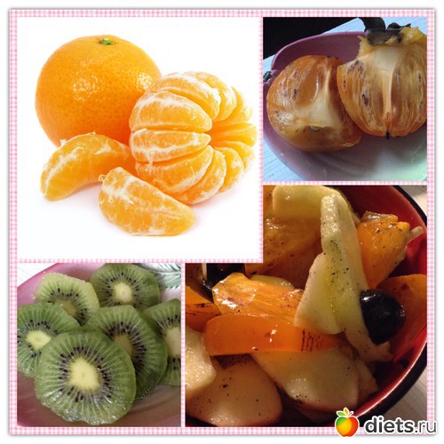 Фруктовые десерты были из киви, мандарина, хурмы и яблока.