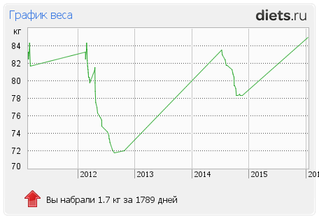 Сегодня тоже глядела на историю веса на Диетсе - максимум 92, минимум 75, на сегодня 81.