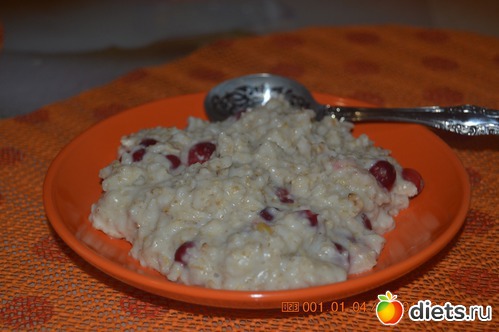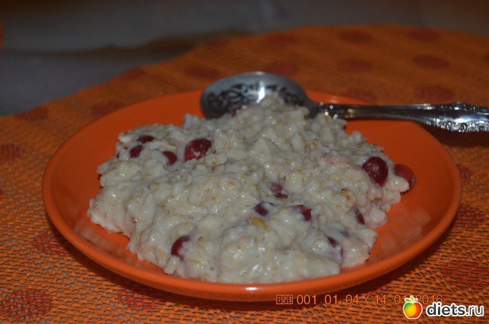 10,00 овсяная каша на воде с молоком и горсточкой клюквы.