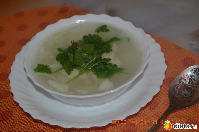 14,00 супчик. (бульон с кур.грудкой + зелень, реп.лучок, 1 ч.л сметанки, соль)