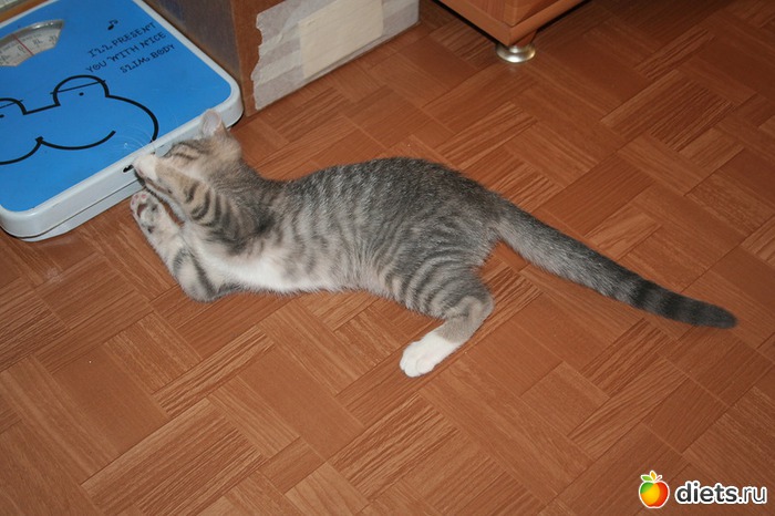 Я сегодня была "котик и молодец". На весах, правда, после первого дня второй фазы привес, но у меня всегда так после белковой пищи. Зато брюки в поясе стали свободнее. И муж еще вчера вечером сказал, что меня "стало как-то меньше"