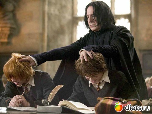 - Улыбка. Улыбка Снейпа. Тут дело доходило до 40 дублей. В сцене дуэли с Локонсом мне надо слегка улыбнуться Кенну. Я достал их всех! Я старался, честно, но.. Тут еще и корсет, стискивающий мои ребра... После 15 дубля Том и Дэнни готовы были меня задушить, Кенн умолял наконец улыбнуться, а Эмма треснула кулаком по столу и заорала: "Да улыбайся же наконец, Рикман!". А я стою и не могу ничего сделать. Улыбка Снейпа - это пытка...