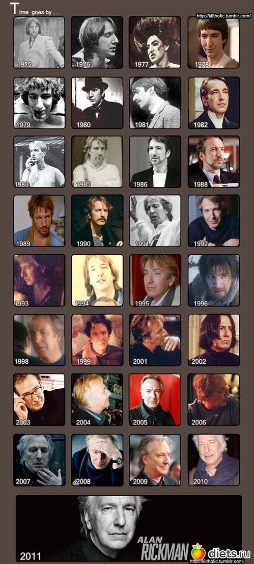 Зрителям звезда навсегда запомнится благодаря своему неповторимому тембру голоса, идеальному английскому акценту и, в общем, блистательной актерской игре. За время своей карьеры Алан успел сыграть в десятках фильмов и спектаклей, получив пять премий, среди которых – "Эмми", "Золотой глобус", BAFTA. Поклонники не могут смириться с потерей профессора Северуса Снейпа, роль которого в "Гарри Поттере" воплотил именно Рикман.