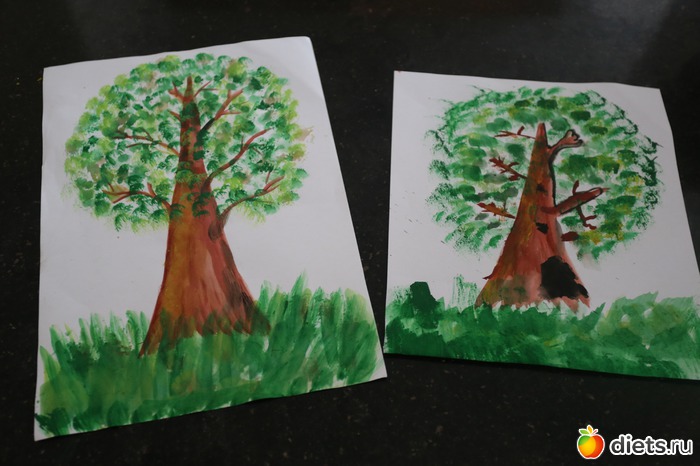 2. Рисовали дерево с ребенком, моё слева