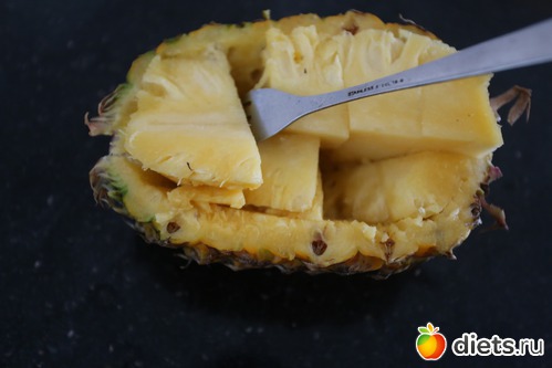 В 16-30 половинка ананаса, вообще лень было чистить, прямо из половинки и ела..
