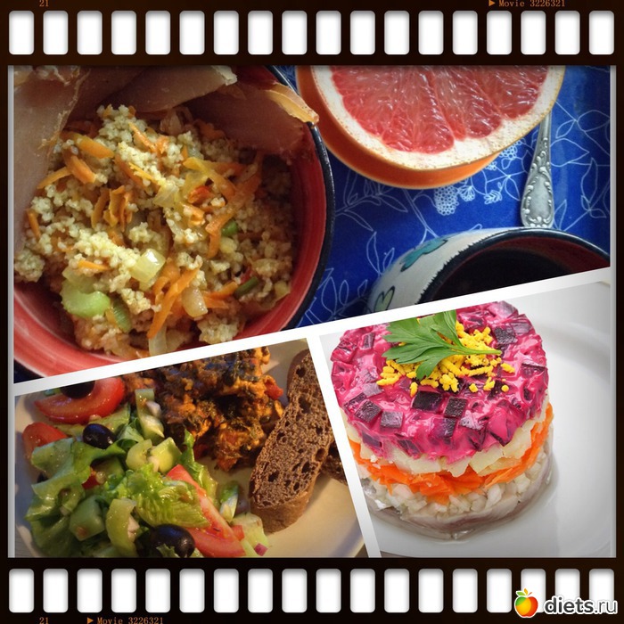карри из куриной грудки со шпинатом и помидорами, салат с оливками и маслом, ржаной багет, еще 1/2 грейпфрута.
