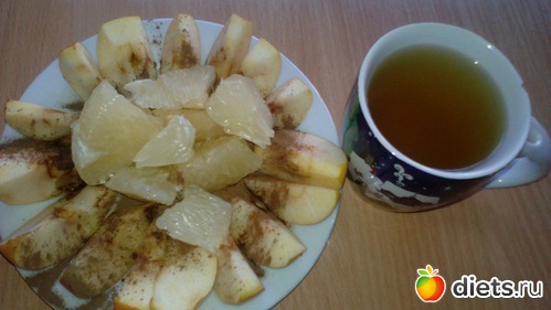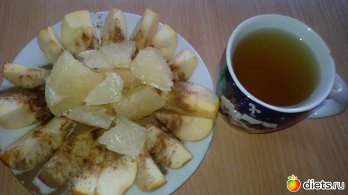 Завтрак: помело, яблоко с корицей, зеленый чай б/сахара