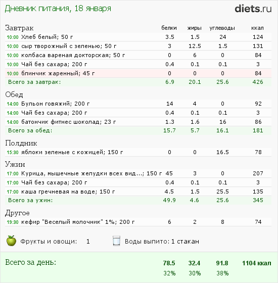 Мой второй день питания.