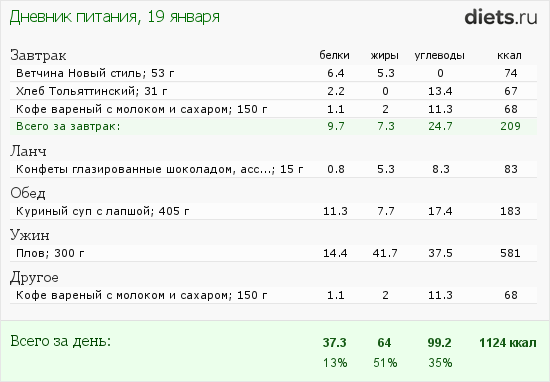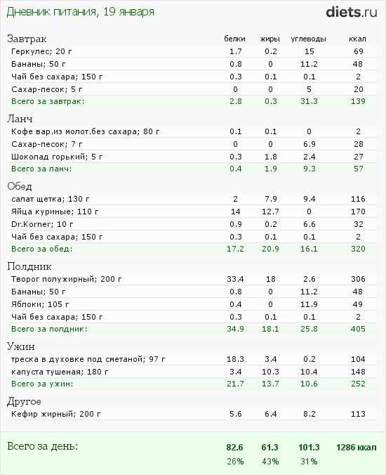 Мой рабочий день. По БЖУ не сбалансировано, но зато по калориям как никогда