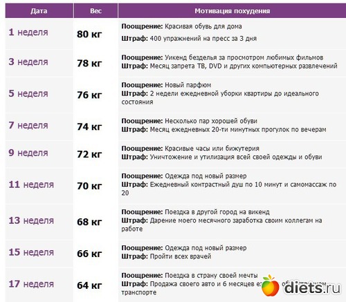 Целью может стать также соблюдение какой-либо диеты.