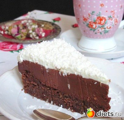 Украсьте кокосовой стружкой. Уберите в холодильник на несколько часов, пока не схватится.