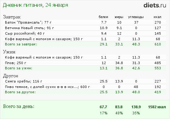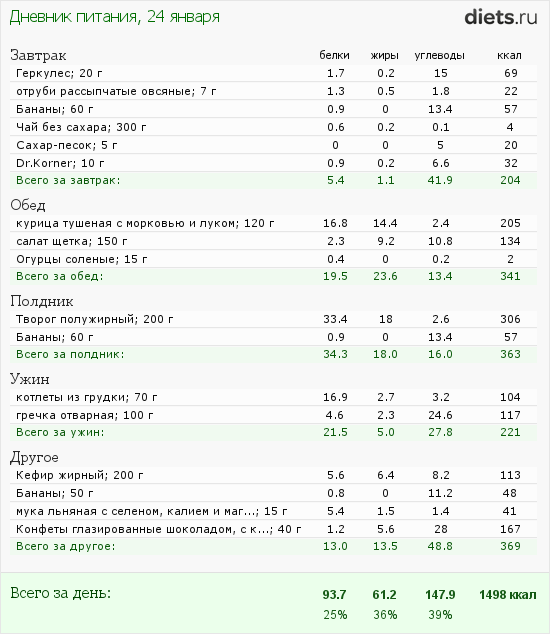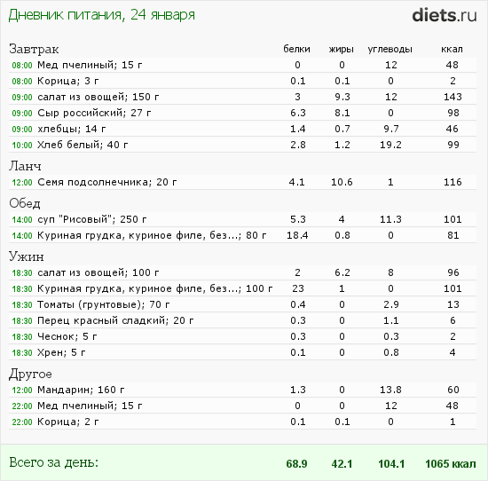 Калорийность продуктов